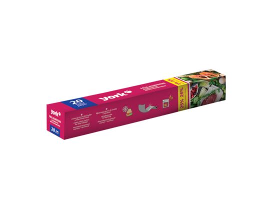 Bardzo mocna i wytrzymała folia aluminiowa o długości 10 m. Odporna na zadarcia - trwała i mocna. Nowa jakość folii marki YORK - jest aż o 25% grubsza od poprzedniej wersji. W kuchni sprawdzi się podczas duszenia, pieczenia w kuchenkach domowych, grillu i ognisku, a także do przechowywania żywności. Przydatna podczas wielu prac domowych - nie tylko w kuchni. Wskazówki: ● pieczesz w folii aluminiowej - zawiń produkt błyszczącą stroną do środka ● przechowujesz w folii aluminiowej - zawiń produkty matową stroną do środka ● folia aluminiowa nie powinna być stosowana w kontakcie z produktami spożywczymi o charakterze kwaśnym [np. ogórki kiszone, kapusta kwaszona, cytryna] ● nie podgrzewaj nigdy produktów przykrytych lub owiniętych w folię aluminiową w mikrofalówce Długość: 1000 cm Szerokość: 28,5 cm Max temp.: 250°C Ilość w opakowaniu: 1 szt.