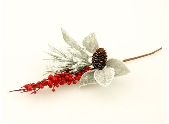Gałązka ostrokrzewu z szyszką 29 cm ośnieżona