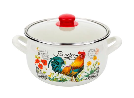 - Garnek emaliowany Pyza Kogucik z pokrywką 22 cm 5 l