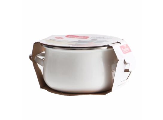 Garnek emaliowany został wykonany z najwyższej jakości stali węglowej, pokrytej błyszczącą powłoką na zewnątrz i białą w środku. Jasne wypełnienie w środku sprawia, że gotowanie dania są dobrze widoczne, łatwo ocenić klarowność wywaru czy kolor potrawy. Jego klasyczny baryłkowaty kształt sprawia, że wewnątrz panuje odpowiednia cyrkulacja temperatury. Każdy garnek ma na brzegu stalową obwódkę, która zabezpiecza go przed obtłuczeniem. Jest wyposażony w szklaną pokrywkę z odpowietrznikiem, co pozwala na odprowadzanie nadmiaru gorącej pary. Doskonale sprawdzi się na kuchenkach zarówno gazowych jaki i indukcyjnych.