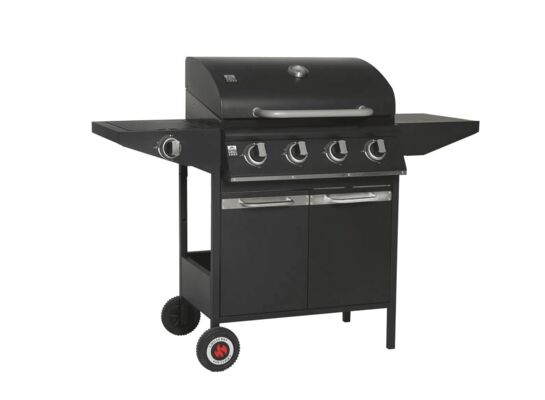 Grill z trzema palnikami ze stali szlachetnej z płynną regulacja (po 3,2 KW) dla optymalnej temperatury grillowania. Palnik boczny (3,2 kW) z praktyczną osłoną do przygotowywania dodatków do grillowania. Cały grill wykonany jest ze stali lakierowanej. Ergonomiczne pokrętła z płynną regulacją dla łatwej obsługi. Zamykana dolna szafka z drzwiami i uchwytami ze stali szlachetnej. Butlę gazową można przechowywać w dolnej szafce. Wskaźnik temperatury pomaga określić dokładną temperatury grillowania. Grill posiada dwa żeliwne ruszty grillowe emaliowane, 2 kółka do szybkiego i łatwego transportu, osłona palnika ze stali szlachetnej do ochrony palników, elektroniczne zapalanie dla łatwej i wygodnej obsługi. W zestawie wąż i reduktor ciśnienia.