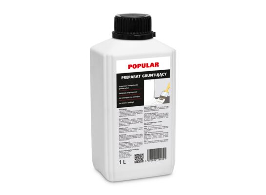 - Informacje dodatkowePOPULAR to gotowy do użycia preparat gruntujący na bazie dyspersji stearynowo-akrylowej, nadaje się do gruntowania chłonnych podłoży mineralnych takich jak: beton, beton komórkowy, jastrychy, posadzki cementowe, cementowo-wapienne, płyty gipsowo-kartonowe. Preparat wnika w głąb, wzmacniając podłoże i wyrównując jego chłonność oraz poprawiając przyczepność mas szpachlowych i samopoziomujących, zapraw, jastrychów, klejów do płytek ceramicznych. Czas schnięcia 2 h.