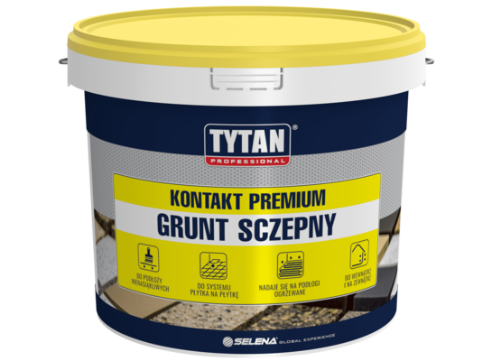 Grunt sczepny KONTAKT PREMIUM jest preparatem gotowym do użycia, na bazie dyspersji akrylowej z dodatkiem kruszywa kwarcowego. Zwiększa szorstkość podłoża i wzmacnia oraz poprawia przyczepność warstw. Przy podłożach mieszanych wyrównuje i reguluje ich chłonność. Ma zastosowanie np. w remontach bez kucia – w szczególności przy systemach montażu płytek ceramicznych oraz gresowych na starej okładzinie ceramicznej lub kamiennej oraz przy podłogach ogrzewanych.