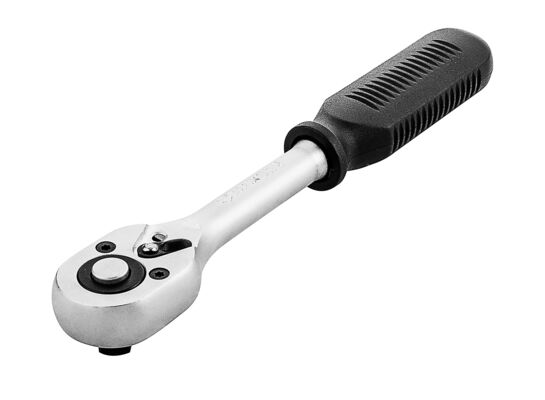 Grzechotka 3/8” TOPEX (numer referencyjny 38D522) o długości 210 mm. Wykonana z wysokiej jakości stali chromowo - wanadowej, zapewniającej długą żywotność produktu. Wyposażona w mechanizm zapadkowy z 24 zębami zębatki oraz przełącznik kierunku obrotów. Faktura rękojeści zapobiega wyślizgiwaniu się jej z ręki, co podnosi komfort pracy. Wykonanie zgodnie z normą DIN 3122 jest gwarantem niezawodności produktu. Marka TOPEX skierowana jest do majsterkowiczów.