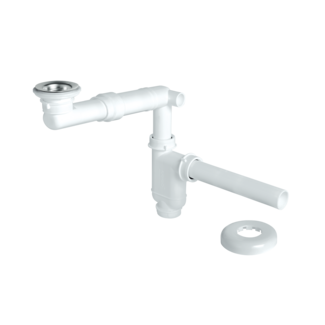 Syfon butelkowy do umywalki z sitkiem metalowym i odpływem do pralki - pojedynczy WADEP
