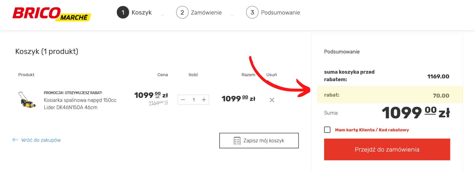 W promocji każdy Klient może otrzymać jeden z dwóch rabatów - 25 zł lub 70 zł. Rabat obejmuje wszystkie produkty dostępne w sklepie internetowym. Ogrodujesz? Świetnie - sprawdź nasze meble ogrodowe, leżaki, hamaki. A jeżeli ogród porządkujesz, czekają na Ciebie świetne kosiarki i podkaszarki, a także narzędzia do pracy ręcznej. A może Remontujesz? Wiosna to świetny czas na odświeżenie mieszkania! Wszystko, czego potrzebujesz - Masz to w Brico! Farby, narzędzia do malowania, meble łazienkowe, armatura, kabiny prysznicowe i wszelkie przyłącza. Urządzasz pokój dziecka? Wykorzystaj rabat na dodatkowe mebelki, kontenerki lub zabawki. A może w oczekiwaniu na lato szukasz basenu lub grilla? Także je mamy! Wraz z potrzebnymi akcesoriami. Rabatuj swoje zakupy!