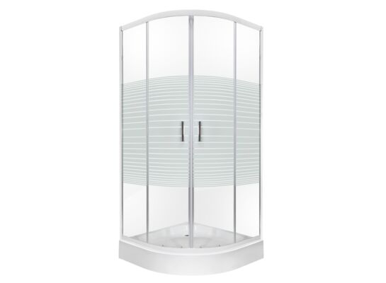 Kabina prysznicowa 80 cm półokrągła w komplecie z brodzikiem akrylowym. Szkło transparentne z białymi pasami. Profile w wykończeniu "chrom".