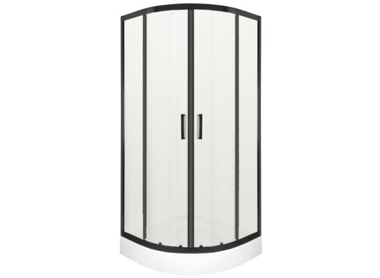 Kabina natryskowa pólokrągła z czarnymi profilami i bezbarwnym szkłem ryflowanym. Łączy w sobie najnowsze wzornictwo z solidnym wykonaniem. Kompletowana z wysokiej jakości brodzikiem.