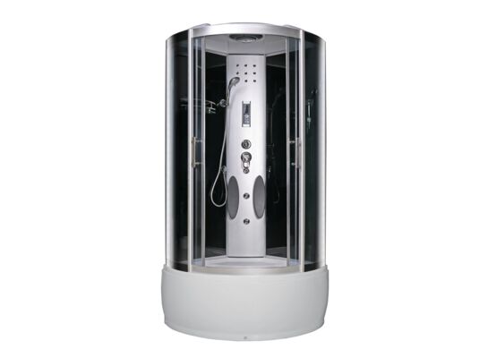 masaż: 3 dysze masażowe, natrysk górny i ręczny, wyposażenie: radio, wentylator, oświetlenie, półka szklana, sterowanie: panel elektroniczny