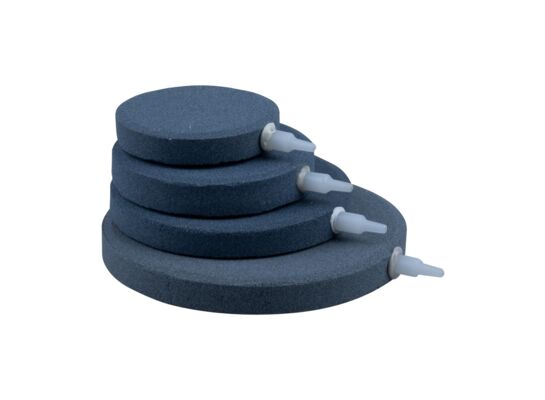 Okrągły kamień napowietrzający dedykowany dla wszystkich oczek wodnych. Podłączony do pompy, bądź napowietrzacza (,,brzęczyka”), zapewnia optymalne natlenienie wody, niezbędne dla życia mieszkańców oczka. Właściwe napowietrzanie stawu jest szczególnie ważne latem, ze względu na spadającą wraz ze wzrostem temperatury wody, rozpuszczalność tlenu. Niemniej kluczowe okazuje się zimą. Kamień, połączony z pompą, uniemożliwia zamarznięcie powierzchni oczka, pozwalając przetrwać zimującym przy dnie rybom. Zapobiega powstawaniu stref beztlenowych, będących źródłem groźnego dla organizmów wodnych siarkowodoru. Produkt, choć dedykowany do oczek wodnych, sprawdzi się też w dużych akwariach podczas sytuacji wzmożonego zapotrzebowania na tlen (np. przy kuracji ryb z użyciem niektórych leków jak zieleń malachitowa czy błękit metylenowy).