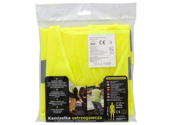 Zapewnia większe bezpieczeństwo w razie awarii, złych warunków widoczności oraz w przypadku dostosowania się do warunków BHP. W większości państw UE stanowi obowiązkowe wyposażenie pojazdu. Posiada podwójny pas odblaskowy oraz praktyczne zapięcie na rzep.