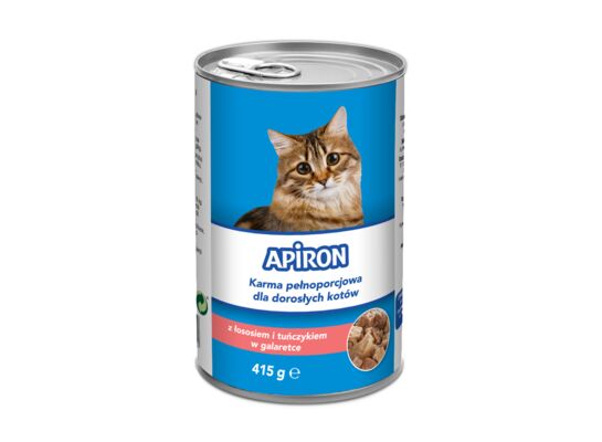 - Karma dla kota łosoś/tuńczyk w galarecie 415 g Apiron
