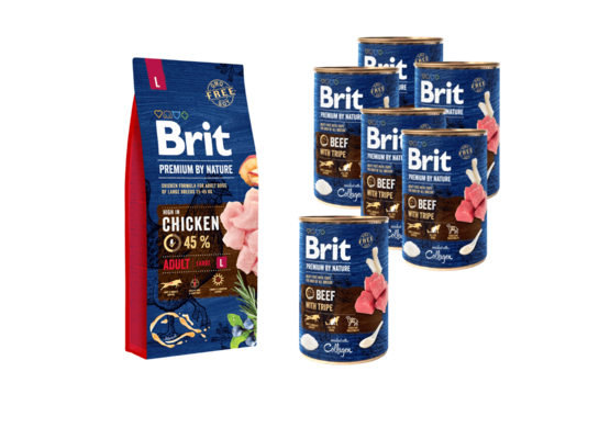 - >Karma dla psa Adult L 15 kg + karma mokra Beef & Tripe 6x400 g Brit Premium by Nature
