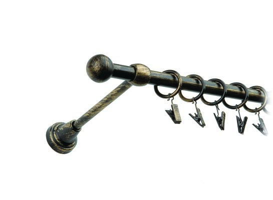 - Karnisz pojedynczy motyw kuty Ø16, 240 cm czarno-złoty kulka