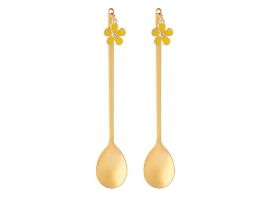 Komplet 2 łyżeczek z ozdobną końcówką żółty kwiatek 13,5 x 2,5 cm złoty