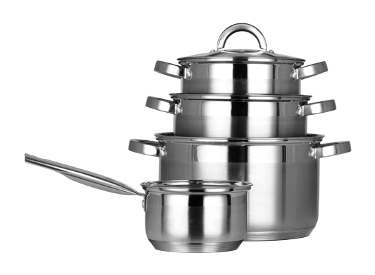 Rondelek ze szklaną pokrywą o wymiarach 16 x 10,5 cm (2,1 l), Garnek ze szklaną pokrywą o wymiarach 18 x 11,5 cm (2,9 l), Garnek ze szklaną pokrywą o wymiarach 20 x 12,5 cm (3,9 l), Garnek ze szklaną pokrywą o wymiarach 24 x 14,5 cm (6,5 l), Wkład do gotowania na parze 20 x 10 cm (3 l)