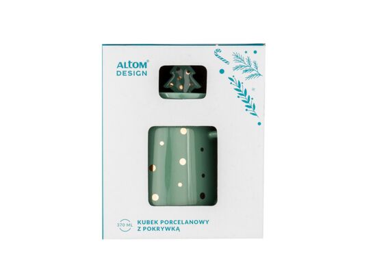 - Kubek choinka 370 ml z pokrywką zielony w złote kropki