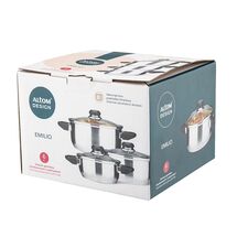 Wszystkie nasze zestawy garnków są kompleksowo wyposażone w szklane pokrywki, co dodaje im praktyczności i ułatwia monitorowanie procesu gotowania — bez konieczności ich podnoszenia. Pomagają także w utrzymaniu odpowiedniej temperatury i wilgotności potraw.
