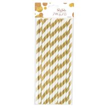 Słomka papierowa w gwiazdki złoto-biały 12 sztuk