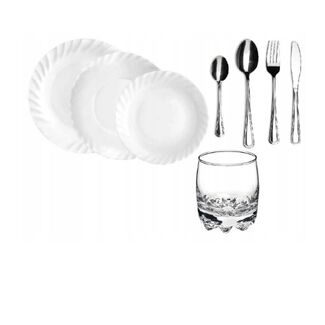 Zestaw obiadowy Prima & Hanna dla 6 osób talerze + szklanki + sztućce