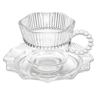 Filiżanka szklana Vivienne 200 ml ze spodkiem w opasce transparentny