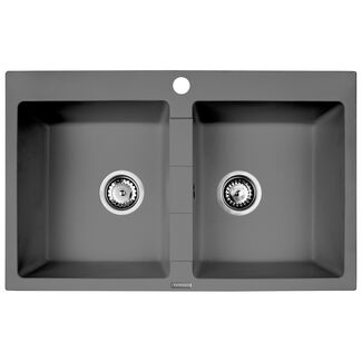 Zlewozmywak ZORBA szary metalik granit 2K B/O 780 x 435 x 180 mm 3,5" + osprzęt
