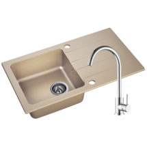 Zlewozmywak granitowy Lagoon 76 x 43,5 cm beżowy z baterią chromowaną Doris