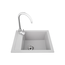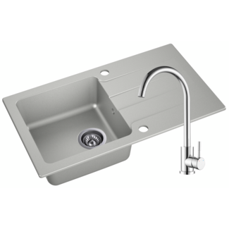 Zlewozmywak granitowy Lagoon 76 x 43,5 cm szary z baterią chromowaną Doris