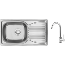 Zlewozmywak stalowy Doppio satyna 78 x 43 cm z baterią Deante