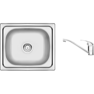 Zlewozmywak stalowy Stock satyna 58 x 45 cm z baterią Deante