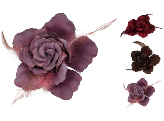 - >Kwiat na klipsie dekorowany piórkami 10 cm mix