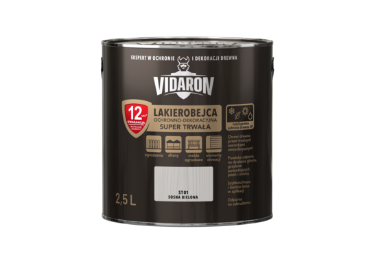 - >Lakierobejca Super Trwała sosna bielona ST01 2,5 l VIDARON