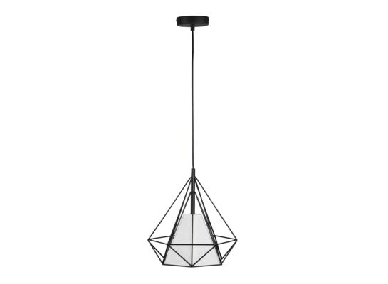 HIRA to lampa wiszącą przeznaczona do wnętrz urządzonych w nowoczesnym stylu. Ozdobny klosz, którego kształt przywodzi na myśl połączenie figur geometrycznych - podkreśla prostotę i minimalizm, a czarny kolor ozdobnej, zewnętrznej jego części w przyjemny sposób buduje kontrast.