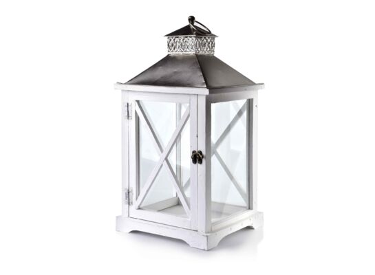 - >Latarnia drewniana LEVI WHITE 24 x 22 x 46 cm