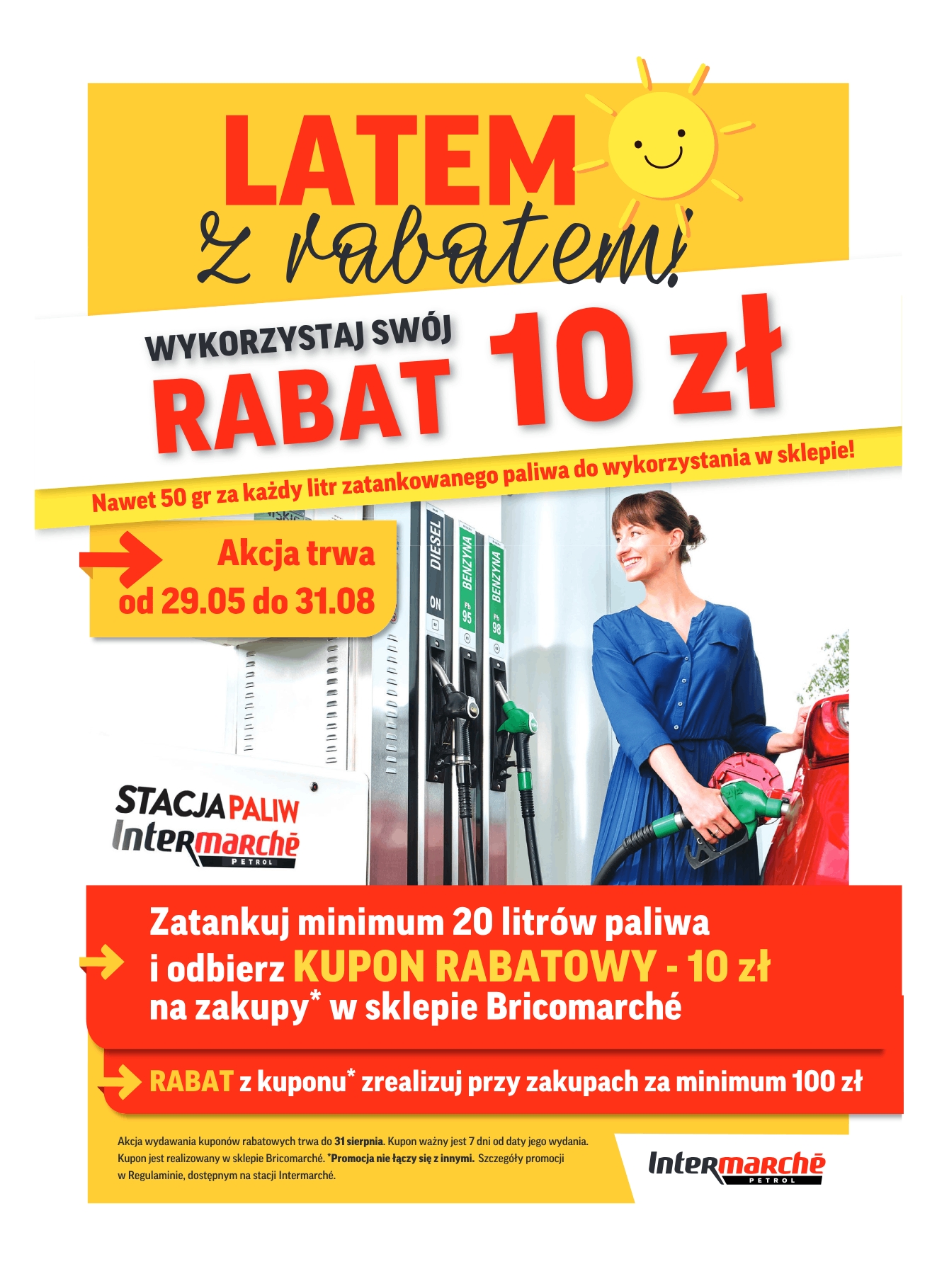 Akcja LATEM Z RABATEM obowiązuje w sklepach Bricomarche, przy których działają stacje paliw Intermarche. Są to sklepy Bricomarche w: Kołobrzegu, Polkowicach, Szamotułach, Ząbkowicach Śląskich.