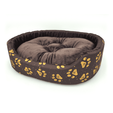 Legowisko S brązowe w łapki zapewni Twojemu psu wygodę podczas snu i wypoczynku w ciągu dnia. Ze względu na uroczy print na tkaninie posłanie to stanie się ozdobą domu. Docenisz je również za możliwość jego prania w pralce.