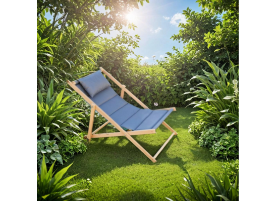 Konstrukcja leżaka została zrobiona z drewna bukowego, a siedzisko z wodoodpornego materiału tekstylnego.