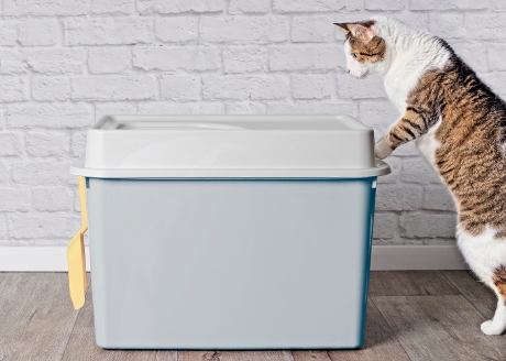 Małe otwory w łopatce przepuszczają niezużyty żwirek z powrotem do kuwety.