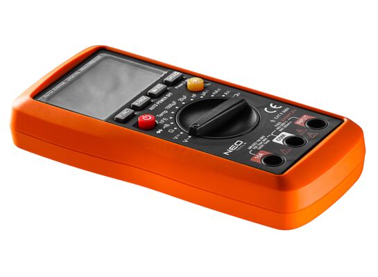 Miernik elektroniczny uniwersalny NEO (numer referencyjny 94-001) służy do dokonania pomiarów napięcia prądu stałego i przemiennego, natężenia prądu przemiennego i stałego, oporności elektrycznej, sprawdzenia ciągłości przewodów, hFE (tester tranzystorów), pojemności, pomiaru diody oraz temperatury. Posiada automatyczne zakresy pomiarowe oraz pamięć ostatnich pomiarów. Korpus wykonany z wysokiej jakości tworzywa sztucznego. Podświetlany wyświetlacz LCD umożliwia pracę przy słabym oświetleniu. Nylonowy pokrowiec ułatwia przechowywanie i transport. Zgodność z europejskimi standardami bezpieczeństwa zapewnia certyfikat CE. Marka NEO spełnia oczekiwania profesjonalistów
