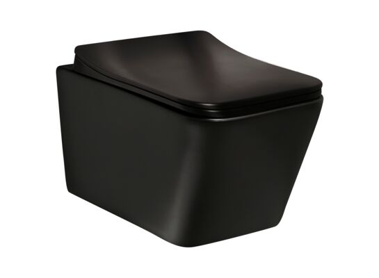 Miska WC z bezkołnierzowym systemem spłukiwania ułatwiającym utrzymanie czystości. Wykończona w czarnym macie. W komplecie deska WC z duroplastu z systemem wolnego opadania i łatwego wypięcia.