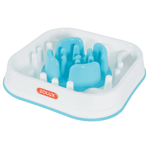 Miska zapobiegająca przekarmieniu kwadratowa ZOLUX o wymiarach 28,5 x 28,5 x 7,5 cm zapobiega łapczywemu spożywaniu pokarmu, co niweluje powstawanie wzdęć i otyłości u Twojego pupila. Specjalne wypustki nie tylko wydłużają czas jedzenia, ale stanowią także świetną zabawę dla zwierzęcia. Produkt można myć w zmywarce.