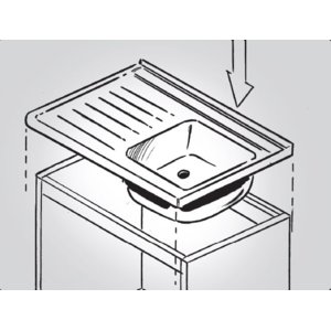 1. Zlewozmywaki tego typu są przeznaczone do montażu w szafkach o standardowych wymiarach. Należy upewnić się, że wielkość szafki pasuje do gabarytów wybranego przez nas zlewozmywaka. W podstawie zlewozmywaka znajdują się 4 otwory centrujące. Ustawiamy szafkę w docelowym miejscu kuchni i odmierzamy odległość od krawędzi zlewozmywaka do końca otworów po jednej i drugiej stronie pod szafką. Wkręcamy częściowo wkręty w górną część ścianek szafki i nakładamy zlewozmywak tak, aby wkręty zablokowały się przy końcu podłużnej części. Metalowy kołnierz zlewozmywaka powinien się opierać o ścianę. Dokręcamy śruby tak, aby zlewozmywak osiadł na sztywno.