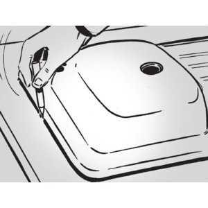 3. Blaty kamienne wymagają użycia profesjonalnego sprzętu w miejscu zakupu. Po wycięciu otworu zakładamy gumową uszczelkę dołączoną w komplecie. Blaty laminowane dodatkowo zabezpieczamy przed wilgocią silikonem sanitarnym.