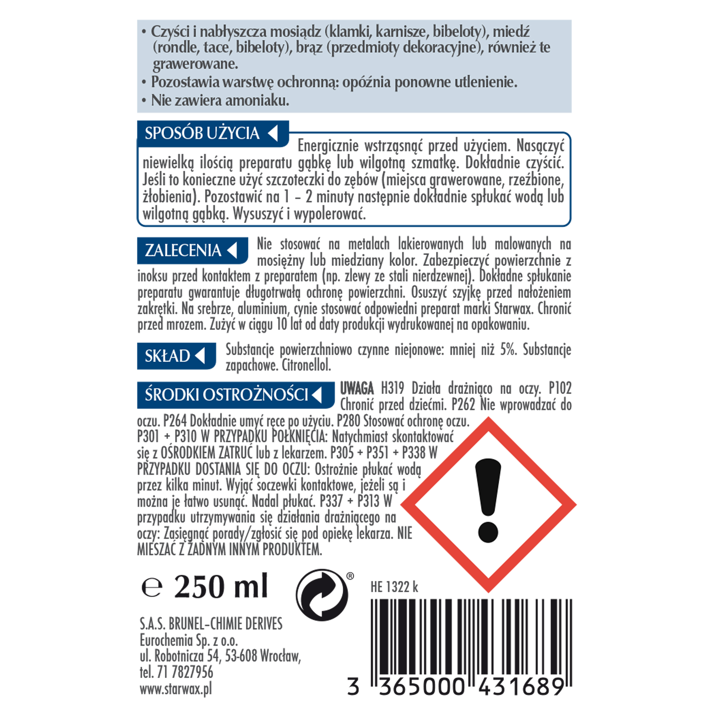 - Mosiądz, miedź, brąz, czyszczenie i nabłyszczanie 250 ml Starwax