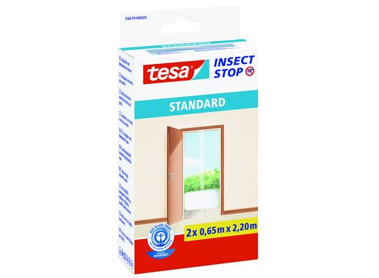Moskitiera do drzwi Standard tesa® to efektywne kosztowo rozwiązanie chroniące wnętrza pomieszczeń przed robakami, muchami, pająkami, komarami i innymi insektami. Naturalna zabezpieczenie, którą łatwo przymocujesz do framugi drzwi tarasowych lub balkonowych i którego usunięcie jest jeszcze łatwiejsze. Zamiast wiercenia dziur wystarczy, że siatkę przymocujesz do framugi przy użyciu taśmy samoprzylepnej (w komplecie), a aby ją usunąć pociągniesz za taśmę samoprzylepną. Moskitiera składa się z dwóch części i można ją przyciąć tak, aby dokładnie pasowała do wymiaru drzwi.