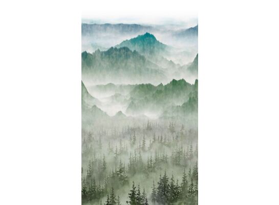 Motyw przedstawia leśny krajobraz spowity poranną mgłą. Delikatne przejścia tonalne, miękkie kontury drzew i subtelna biel tworzą efekt spokojnej głębi, która działa relaksująco i wizualnie powiększa przestrzeń. Estetyka muralu świetnie współgra z naturalnymi materiałami, takimi jak drewno, len czy kamień.