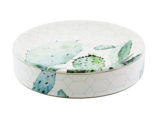 Kolekcja Cactus Silver to oryginalny zestaw przyborów niezbędnych w Twojej łazience. Mydelniczka wykonana z ceramiki białej ze srebrnym zdobieniem.