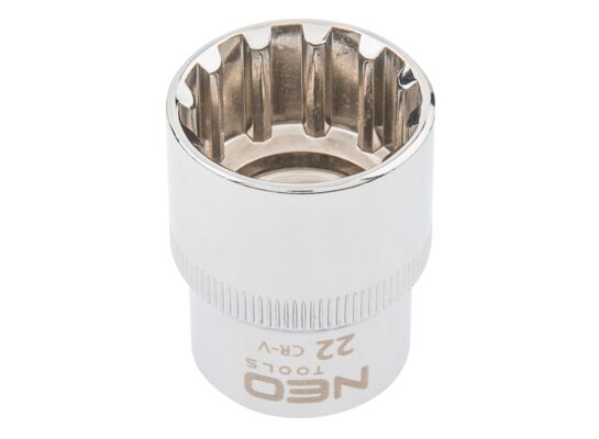 Nasadka Spline 1/2" NEO (numer referencyjny 08 - 594) o rozmiarze 22 mm, wykonana z wytrzymałej stali chromowo - wanadowej zgodnie z normą DIN 3124. Sferyczny kształt nasadki daje bardzo szerokie jej zastosowanie, umożliwiając odkręcanie śrub torx, spline, 12 - kątnych, metrycznych, calowych i kwadratowych. Jakość narzędzia potwierdzona certyfikatem TÜV i 25 - letnią gwarancją producenta. Marka NEO spełnia oczekiwania profesjonalistów.
