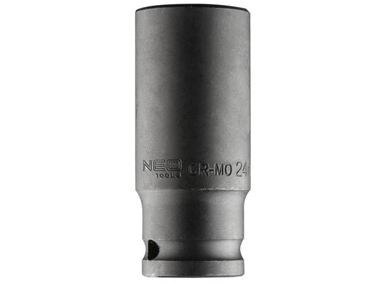Nasadka udarowa 24 mm długa, 1/2" NEO (nr ref. 12-324). Wykonana z wytrzymałej stali chromowo-molibdenowej. Pogrubione ścianki nasadki gwarantują jej wysoka wytrzymałość. Większa długość nasadki umożliwia dostęp do głębokich gniazd śrub. Marka NEO spełnia oczekiwania profesjonalistów.