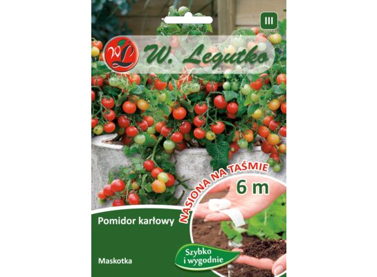 - Nasiona na taśmie pomidor gruntowy karłowy wiotkołodygowy Maskotka 7,5 g gc. III W.Legutko